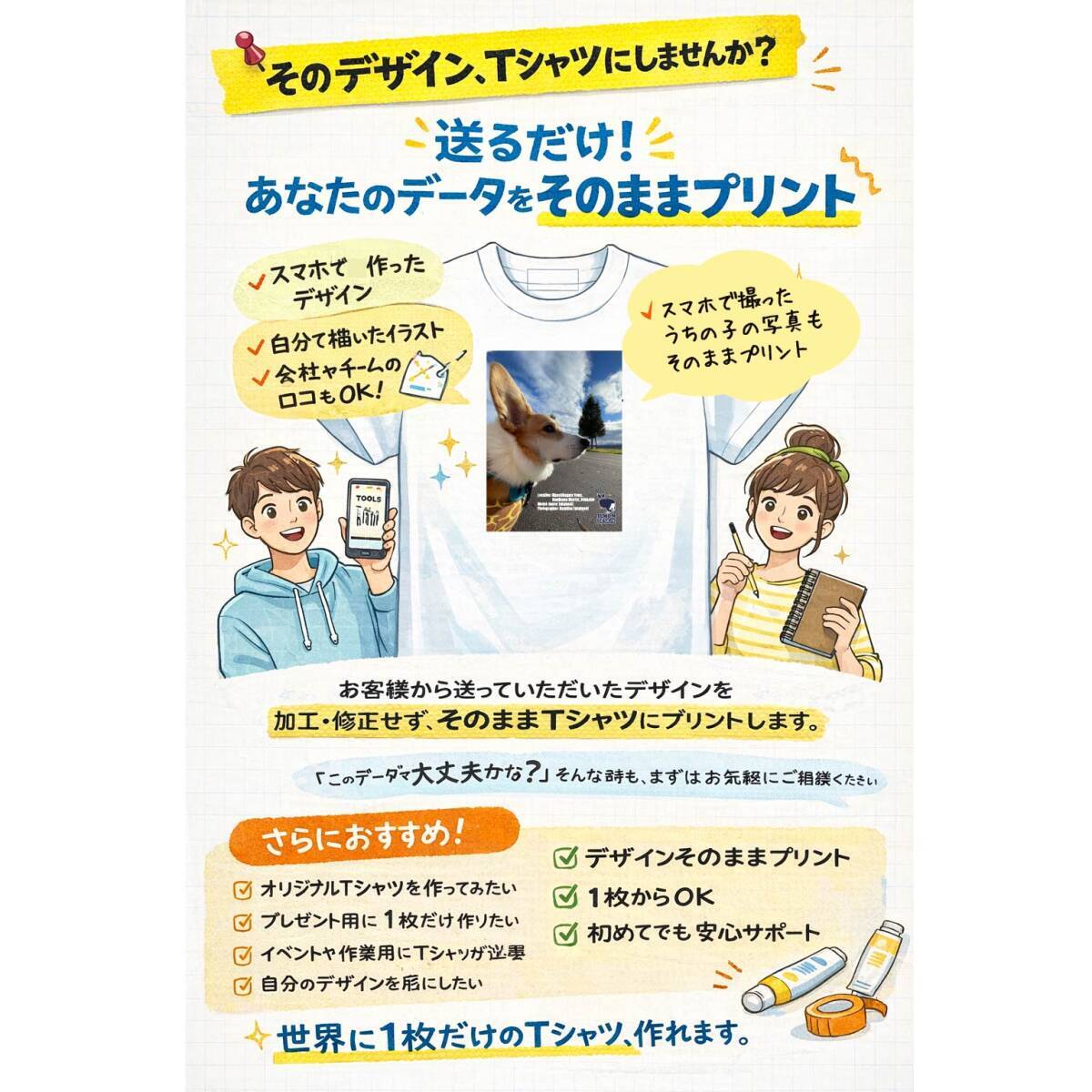 世界に1枚だけのTシャツ、作れます。
